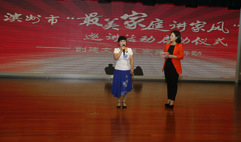 为进一步展示“最美家庭”优秀事迹,在全社会传递好家风、好家训,促使广大家庭见贤思齐,推动“最美家庭”寻找活动深入开展,同时动员家庭力量,助力我市全国文明城市创建,8月18日,省妇联、《祝你幸福》杂志社和滨州市妇联联合举办了山东省最美家庭故事巡讲活动走进滨州暨滨州市“最美家庭讲家风”巡讲活动启动仪式。