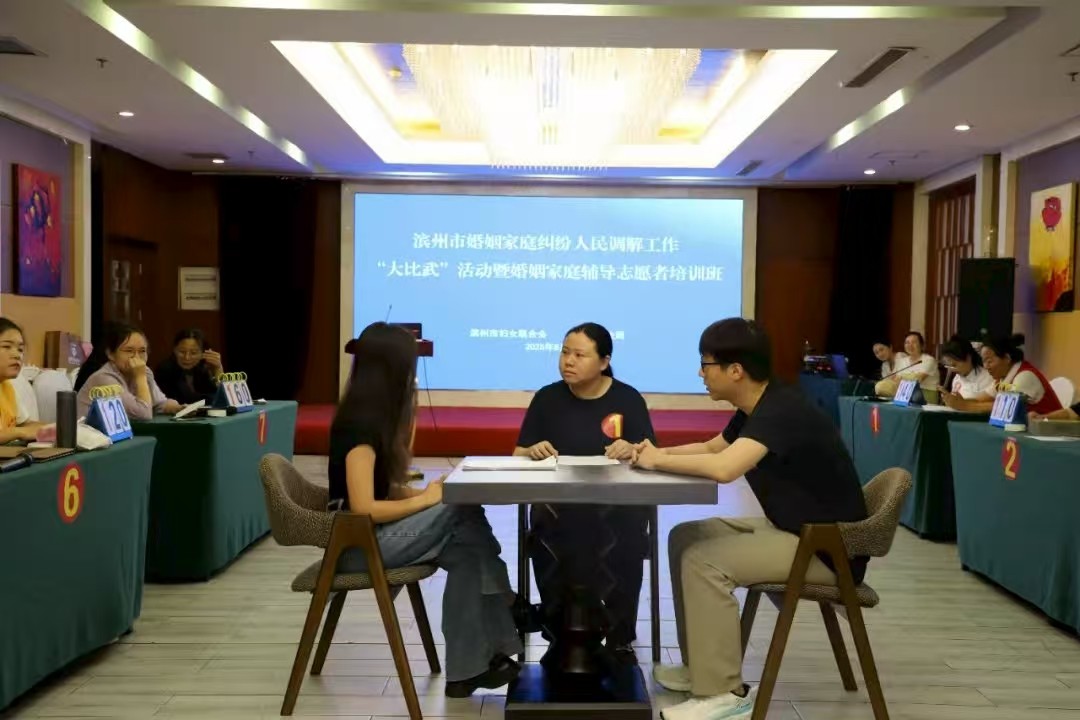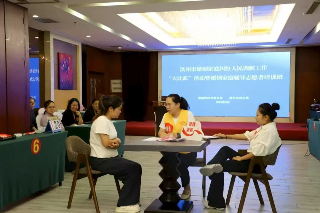 为深入学习贯彻党的二十大和二十届二中、三中全会精神,贯彻落实习近平总书记关于注重家庭家教家风建设重要论述,提升婚姻家庭纠纷人民调解工作质效,更好地服务妇女、服务家庭、服务社会治理,助力心安城市、平安滨州建设。2025年8月18-19日,市妇联、市司法局联合举办滨州市2025年婚姻家庭纠纷人民调解工作“大比武”活动暨婚姻家庭辅导志愿者培训班。