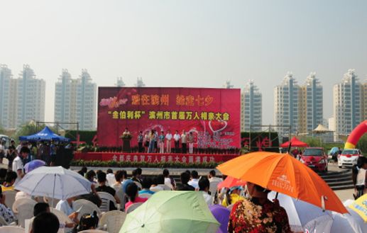 8月16日(农历七月初七)上午,在滨州建市十周年的喜庆氛围中,在素有中国情人节之称的“七夕”到来之际,由滨州市总工会、市妇联、市妇儿办主办,滨州大众网承办,贵苑大酒店、奥博瑜伽、金都庆典等协办的“爱在滨州、缘定七夕——金伯利杯滨州市万人相亲大会”在市政广场正式拉开帷幕。滨州市委常委、市总工会主席魏克田,市妇联主席杨淑云,市总工会常务副主席李军等领导出席开幕式。