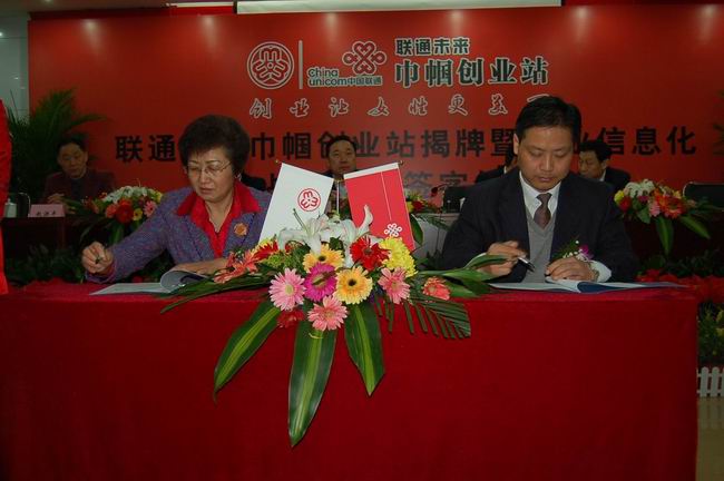 4月8日,“联通未来巾帼创业站”揭牌仪式暨企业信息化战略合作协议签字仪式在市联通公司南楼八楼会议室举行。