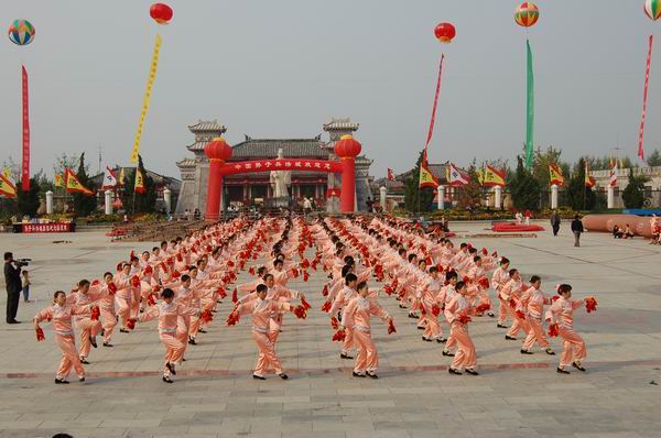 在首届孙子文化旅游节及开城庆典上,惠民县妇联组织的200名妇女进行大型秧歌表演。