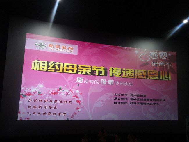 5月12日是母亲节,在这个特殊的节日,博兴县妇联、博兴县新奥教育培训学校和博兴县好视力眼睛矫正中心联合开展“相约母亲节 传递感恩心”公益活动,组织全县的“爱心妈妈”和结对帮扶的孤困儿童及新奥学校部分家长和孩子到电影院观看了一场感恩电影——《漂亮妈妈》。通过活动的开展,增进了母子之间的感情,让孩子们懂得母亲的艰辛,母爱的伟大,从而懂得感恩母亲,同时,也让妈妈们度过了一个快乐而有意义的节日。