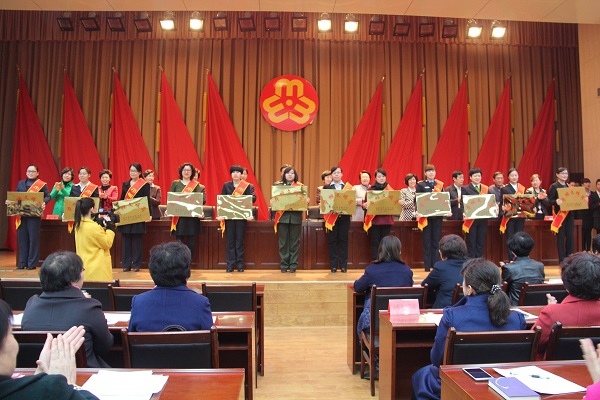 大会为荣获滨州市“三八”红旗集体、滨州市“巾帼文明岗”、滨州市“三八”红旗手、“巾帼建功”标兵的先进集体和先进个人颁奖。