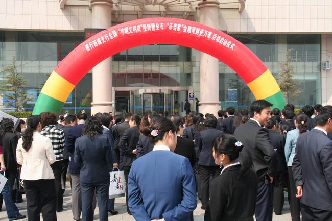 4月8日,在建设银行西城支行举行了全国“巾帼文明岗”授牌暨全市“乐当家”金融理财进万家活动启动仪式。市委常委、市委宣传部长祁维华,副市长胡炳山,建设银行省分行副行长李文达等领导出席仪式,祁维华部长、李文达行长为荣获全国“巾帼文明岗”荣誉称号的建设银行西城支行授牌,市政府副市长胡炳山作重要讲话。各县区妇联主席、市直各单位妇委会主任及省级以上“巾帼文明岗”负责人、建行各经营单位、部室主要负责人百余人参加仪式。