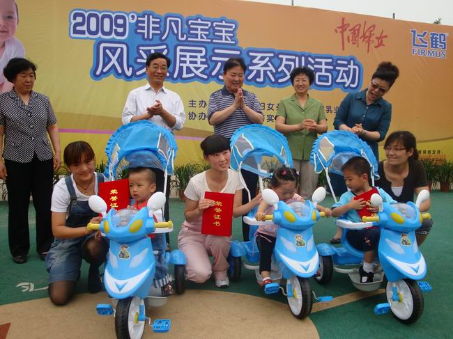 5月28日,在儿童节来临之际,由中国妇女杂志社、飞鹤乳业、滨州市妇联等单位联合主办,滨州市实验幼儿园、安吉尔乐园协办的滨州市“2009非凡宝宝风采展示”复赛在滨州市实验幼儿园隆重举行。来自我市各县区的百余名历经海选、初赛等环节层层选拔出来的一到三岁半的婴幼儿参加了本次比赛,通过宝宝爬行比赛、小白兔拔萝卜以及诸多家长与孩子共同参与的多个项目的评比,最终评选出一等奖3名,二等奖6名,三等奖9名。整个比赛过程生动、活泼、有趣,受到了参赛宝宝的喜爱,也赢得了广大家长的好评。妇联组织本次活动旨在帮助我市广大家长树立正确的育儿理念,掌握科学的教子方法,使家庭教育工作更具生机与活力,促进我市婴幼儿的健康成长和全面发展。