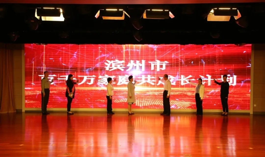 与会领导与家庭代表共同启动“百千万家庭共成长计划”。现场观看了邹平市妇联开展的“颂党恩、传家风、共成长”和无棣县妇联开展的“小家传大爱 红心永向党”主题活动。