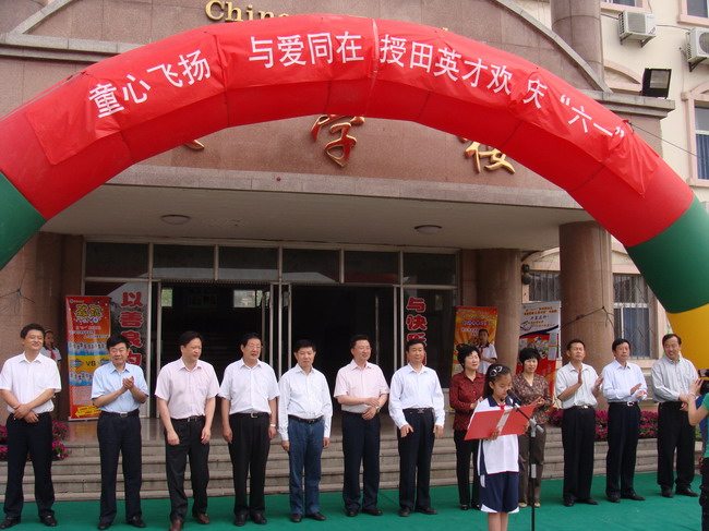 在市委常委、滨城区委书记何思清的陪同下,孙孺声一行首先来到授田英才学园。在这里,少先队员们向走访领导献上了红领巾,走访领导向学校赠送了慰问金,并向少先队员代表赠送了足球、篮球、羽毛球等节日礼物,祝愿他们节日快乐。在少先队员的带领下,走访领导观摩了该校庆祝六一系列活动,例如学生篮球赛海报、文艺汇演海报等,并观摩了该校书画作品展、素质拓展超市。离开学校前,孙孺声一行特意来到学校的门卫室,要求学校一定要加强保卫工作,为学生们创造安全的学习环境。