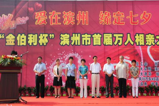 8月16日(农历七月初七)上午,在滨州建市十周年的喜庆氛围中,在素有中国情人节之称的“七夕”到来之际,由滨州市总工会、市妇联、市妇儿办主办,滨州大众网承办,贵苑大酒店、奥博瑜伽、金都庆典等协办的“爱在滨州、缘定七夕——金伯利杯滨州市万人相亲大会”在市政广场正式拉开帷幕。滨州市委常委、市总工会主席魏克田,市妇联主席杨淑云,市总工会常务副主席李军等领导出席开幕式。