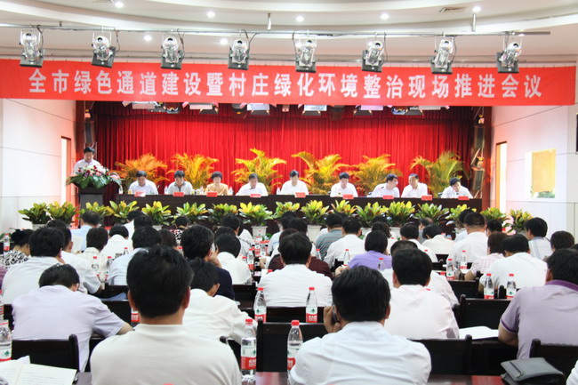 尚龙江副市长在讲话中指出:村庄绿化及环境整治工作是社会主义新农村建设的重要组成部分,也是统筹城乡发展的重要内容。各级各部门一定要充分认识村庄绿化及环境整治工作的重要性和紧迫性,进一步增强工作的自觉性、主动性,扎实做好各项工作,推动绿化卫生文明示范村建设再上新水平。总的要求是:全面启动、突出重点、打破界限、分档考核、排名奖补,重点是高速公路、国省道、铁路及其它主干线公路两侧500米范围内的村庄。具体要求:一是要坚持全方位动员。为使这项活动在基层更加深入人心,真正成为我市新农村建设的重要载体、统筹城乡发展的重要举措,必须进一步建立健全宣传导向机制,动员到村,宣传到户,落实到人。通过观摩宣传发动、入户宣传发动、公共宣传发动、媒体的宣传发动等手段,做到全党动员、全民动员、人人动手、户户参与,努力营造良好的舆论氛围,打一场全民参与的村庄绿化及环境整治攻坚战。二是要坚持高起点规划。要以县区为单位认真编制村庄布局规划,绘制好示意图,明确整治对象、责任人、完成时限,把目标任务分解落实到年度、到乡镇、村庄、到人头。要以村庄为单位科学编制绿化及环境整治规划,按照因地制宜、切实可行、突出特色的原则,统筹安排产业发展、基础设施配套、公共服务设施建设、住宅建筑空间布局,形成布局合理、设施配套、环境整洁、管理规范、文明进步的新农村。三是要坚持强有力推进。各县区、各乡镇党政一把手作为第一责任人要负总责,通过干部带动、政策推动、典型带动、外力拉动等措施确保各项工作任务落到实处。市直各领导小组成员要定期深入基层监督检查,帮助解决实际困难。各乡镇办领导干部,特别是1015名驻村联络员作为直接责任人,要切实履行职责,进村指导,督促任务完成。各级财政资金要加大投资力度,市里对完成绿化任务、达到整治要求的村实行以奖代补;县区、乡镇办也要制定相配套的补助办法。要广泛深入开展群众性创建活动,定期组织“绿色家庭”、“生态庭院”、“环保家庭”创建活动以及“文明卫生户”、“生态农家”评选表彰活动。发动和组织机关、企事业单位,以“物援”与“智援”相结合的方式,在资金、信息、技术、人才等方面,为村庄绿化及环境整治工作提供实实在在的帮助。