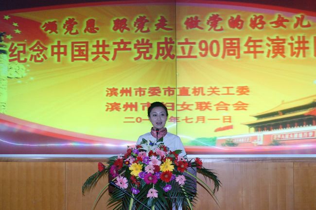 在90年前那个杨柳轻拂的7月,蒙蒙细雨,游人渐去的嘉兴南湖上,12个人在一条画舫里通过了一个纲领,从此它如同一根火柴,给黑沉沉的神州大地闪出了一丝火光,这个希望之火在中华大地上迅速蔓延,给古老的中华民族带来了光明与希望。秋收暴动的长缨,八一起义的枪声,井岗山头的号角,万里长征的战歌,是党高擎镰刀斧头的旗帜,率领中华儿女奋勇向前。遵义会议的曙光,抗击日寇的胜利,西安事变的调和,是党用超常的智慧挽狂澜,拯万民,定国运;过大江,追穷寇,缚苍龙,是党把五星红旗升起在祖国的上空。今天,在党的英明领导下,一国两制显成效,香港澳门齐回归。精彩还在延续,感动无处不在。是党的领导带来了妇女的大解放,新女性的诗歌演绎着奋进的旋律;女人不再是世界的点缀,巾帼不让须眉的臂膀同样坚挺。如今,我们妇女同志们用自己的实际行动,做出了令人赞叹的业绩!以优异成绩迎来了党的90周年华诞。