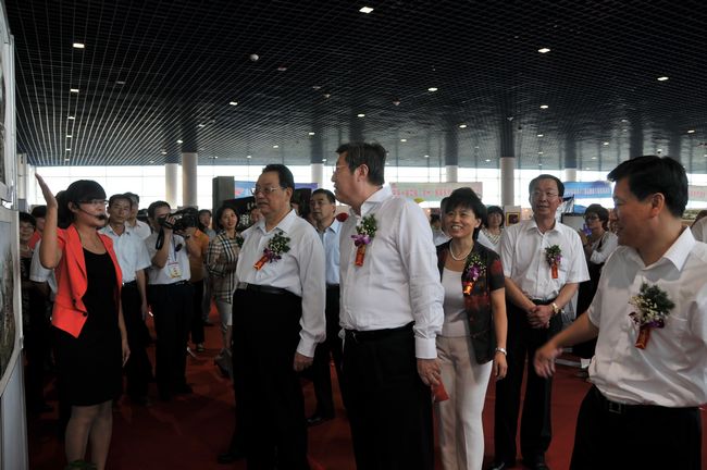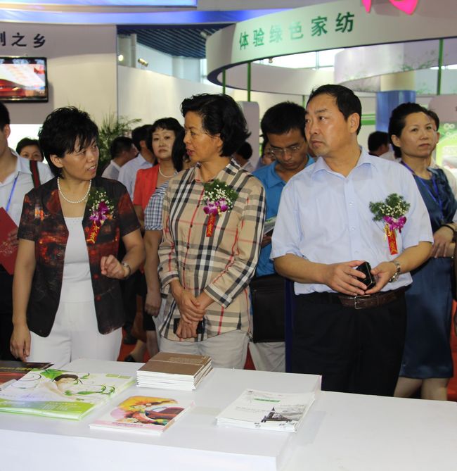 (市委副书记、市长张光峰陪同副省长张建国在家纺精品展区)