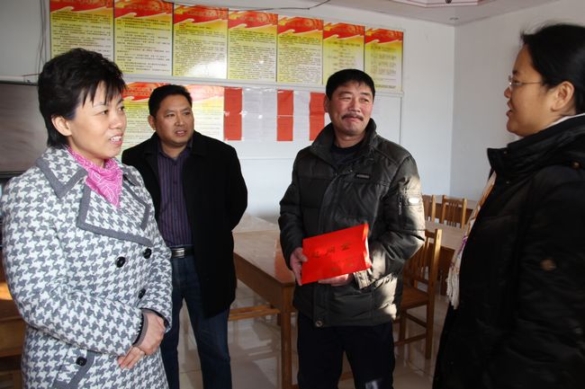 郑主席一行到省妇联“第一书记”任职的古城镇任家村、台李村、洼李村,给每村困难党员和群众送去1万元慰问金。随后来到市妇联“第一书记”任职的富国街道办事处吴家村走访慰问了部分困难党员和群众,给他们带去价值1万元的慰问金及生活用品。所到之处,市妇联的同志们与群众亲切交谈,详细了解他们的家庭生活情况,把党和政府的关怀送到他们心中。 其间,郑主席一行还参观了古城镇任家村的省妇联贫困母亲救助项目——食用菌种植大棚及台李村的“留守流动儿童活动站”。