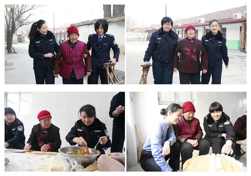 该五保供养服务中心共有孤寡老人10人,最大的年龄86岁,最小的62岁,有的身体不是很好,生活很不方便。活动期间,女警们和老人一起包水饺、拉家常、贴福字,详细询问老人们的生活状况及现实生活中的实际困难,送去温馨的问候和新年的祝福,在热气腾腾的饺子中,在大家的欢声笑语中,让老人们真正感受到来自人民警察的关爱,来自社会大家庭的温暖。