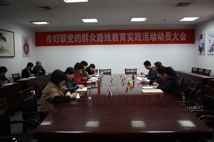 会上,市妇联党组书记、主席郑玉梅对市妇联开展党的群众路线教育实践活动做动员讲话,要求要充分认识开展教育实践活动的重大意义,切实增强搞好教育实践活动的责任感、使命感、紧迫感;要牢牢把握群众路线教育实践活动的指导思想和基本原则,确保不跑题、不走神、不散光;要集中解决作风突出问题,对“四风”积弊和顽症进行彻底的大排查、大检修、大扫除;要坚决贯彻落实市委决策部署,确保整个教育实践活动精细化、科学化、规范化;要加强教育实践活动的组织领导,确保活动的实效性、长效性、创新性。通过进一步改进作风建设,着力解决妇女群众反映强烈的突出问题,切实落实为民务实清廉的要求,以作风建设的新成效推动妇联工作的新发展。
