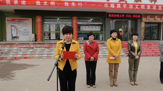 文明从脚下起步,创建自你我开始 沾化县妇联、县文明办联合举办“我承诺、我文明、我先行”——巾帼携手创文明承诺签名活动