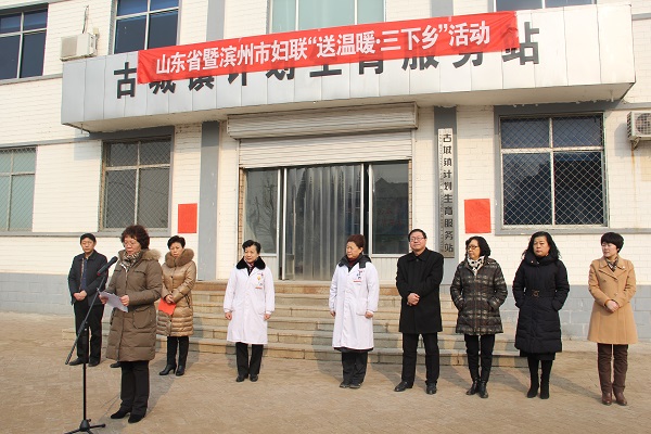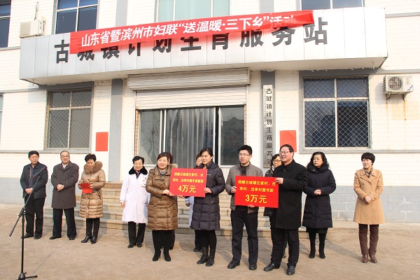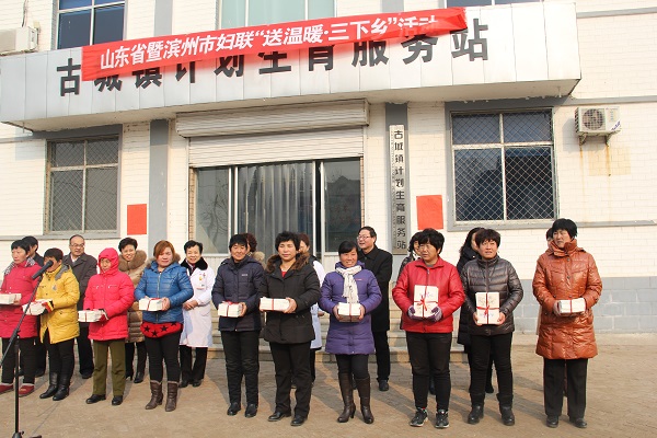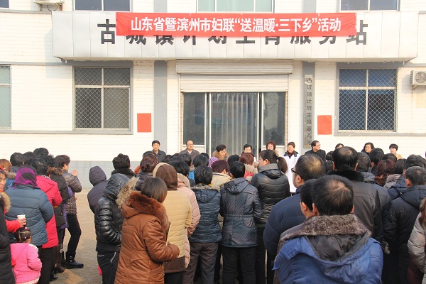 为深入贯彻落实党的十八大、十八届三中、四中全会精神,认真践行党的群众路线,充分发挥妇联组织作用,更好地服务“三农”,服务妇女儿童,2月3日上午,山东省妇联、滨州市妇联在沾化县古城镇联合举办了山东省暨滨州市妇联“送温暖、三下乡”活动。