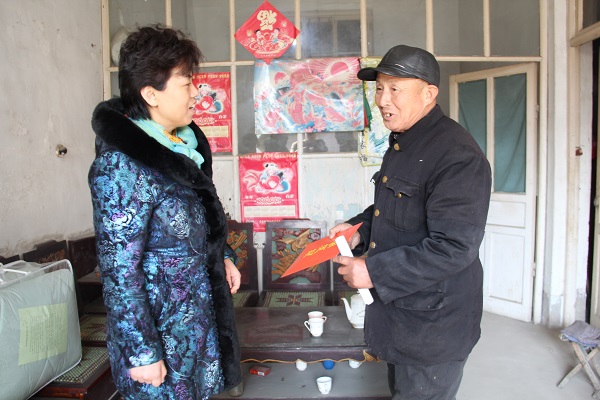 2月12日下午,市妇联主席郑玉梅带领班子成员到市妇联“第一书记”派驻村滨北街道董家村,对60岁以上老人和困难群众进行走访慰问,详细询问了他们的身体状况和生活情况,送去了慰问金和棉被、春联等慰问品,为他们送去了冬日的温暖,同时向他们表示节日的祝福。