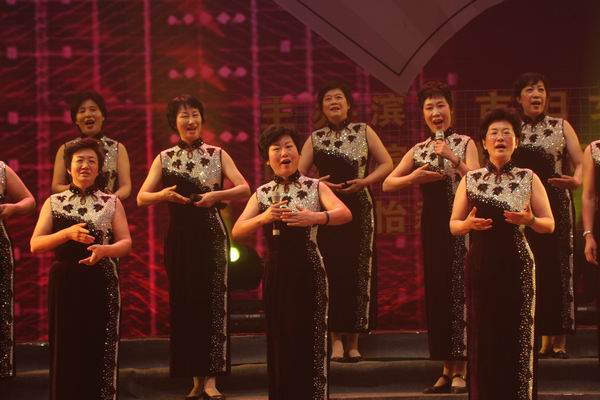 市委常委、宣传部部长祁维华,市委常委、市总工会主席魏克田,市人大常委会副主任郭建新,副市长崔娅妮,市政协副主席李绍木,市政协顾问吴金娃,军分区副司令员戴惠球等领导出席。市直机关、企事业单位的广大妇女一千多人观看演出。(上图为女领导干部表演的《歌曲联唱》)